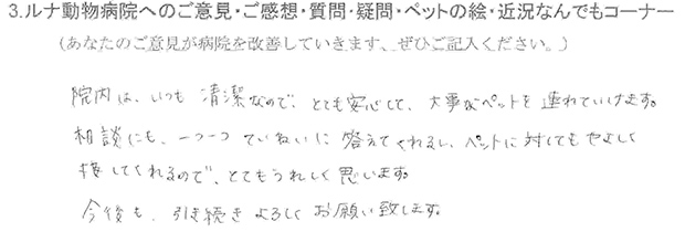 動物病院がより快適で何でも気軽に相談できる病院に改善するため、皆様のご意見が必要です。